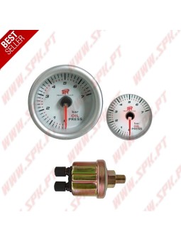 Manómetro Pressão de Óleo - Fundo Branco C/Ponteiro Laranja - Iluminação em LED Branco
